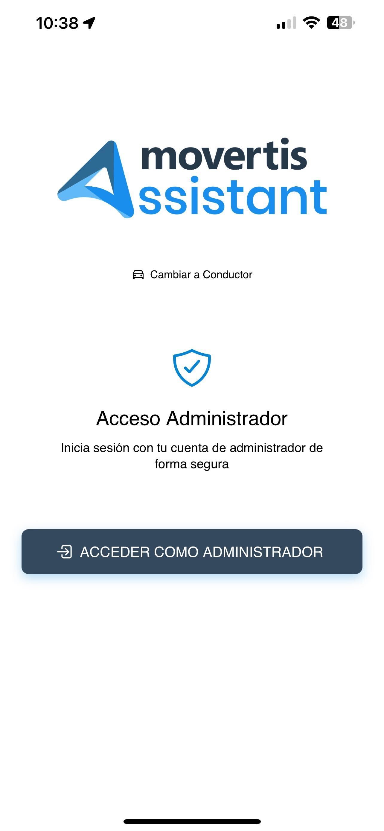 Cuando abras la aplicación, se solicitará que ingreses un número de teléfono. Sin embargo, es importante destacar que no debes introducir ningún número de teléfono. Para acceder al panel de tu flota, simplemente debes hacer clic en el boton “Soy Administrador”, ubicado debajo del logo de Movertis Assistant.