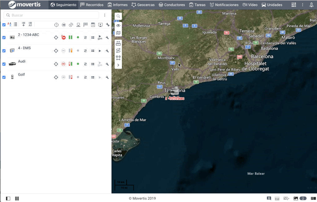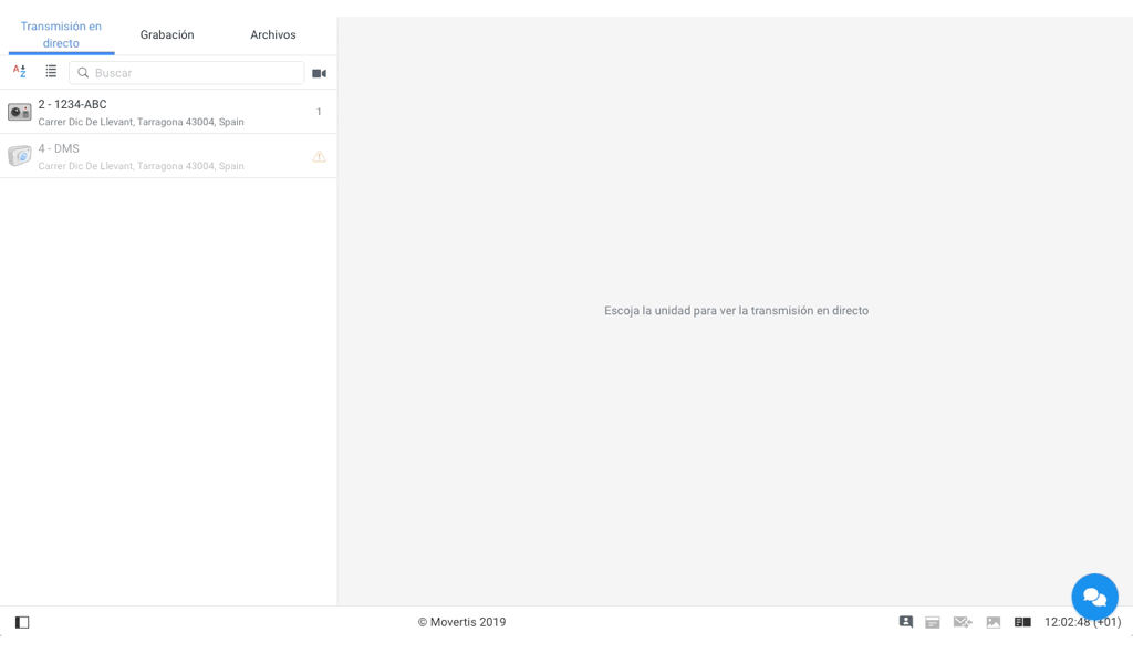 Para abrir la miniventana de la unidad en el modo de video, haz clic en el icono "vídeo" de la unidad que deseas visualizar dentro de la pestaña Seguimiento.