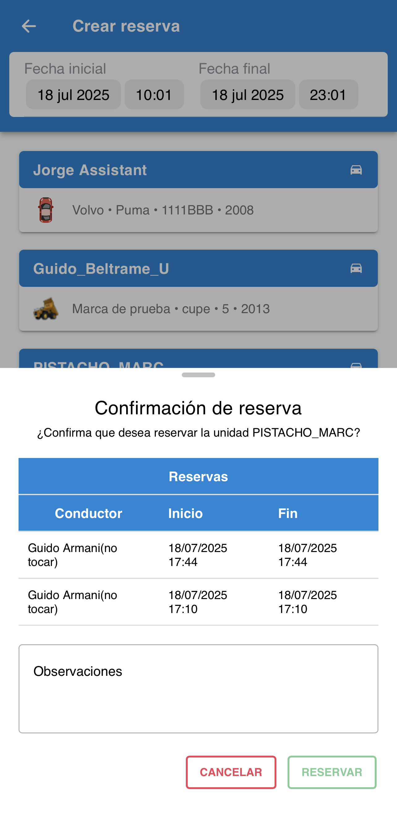 Si el vehículo ya está reservado, podrás ver quién lo ha reservado y durante qué intervalo de tiempo. Esta información es útil si necesitas contactar con ese conductor por alguna urgencia o necesidad específica.