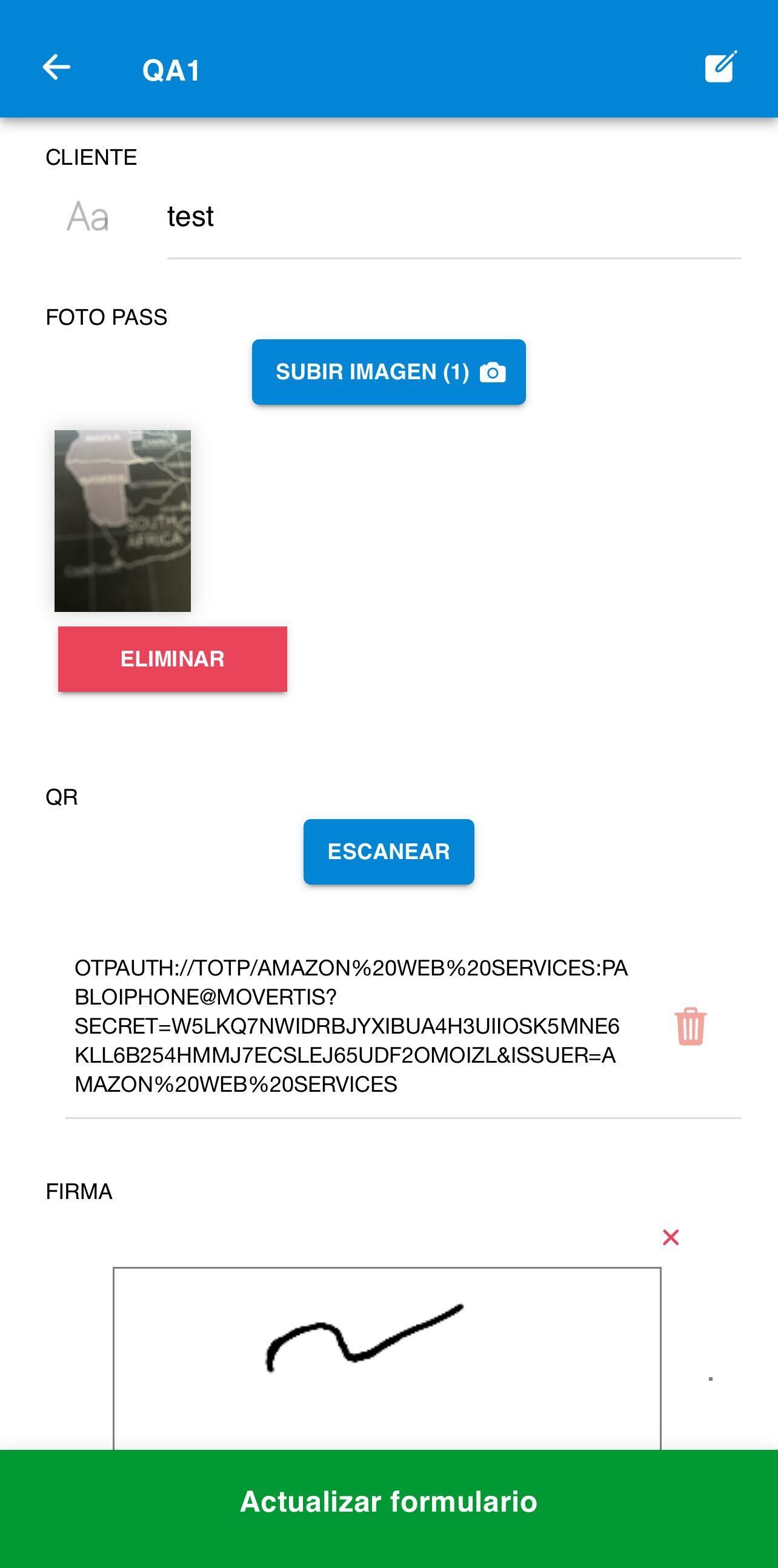 Al hacer clic en esa opción, podrá modificar cualquier dato del formulario. Una vez completada la edición, solo deberá pulsar “Actualizar formulario”, y los cambios se guardarán automáticamente en el sistema. Así, la empresa verá siempre la versión más actualizada del registro, sin duplicados ni pasos innecesarios.